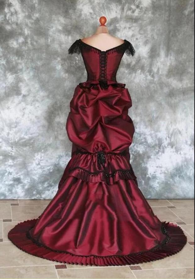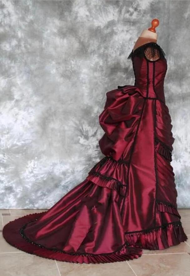 Burgundy Goth Victorian Bustle wedding dresses Vintage Beaded Lace-up Back Corset Top Gothic Outdoor Bride Wedding Gown