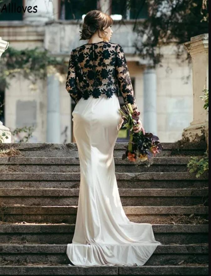 Modest White And Black Mermaid Wedding Dresses For Women Elegant Lace Coat With Long Sleeves Brides Shower Dress Boho Fashion Bridal Gowns