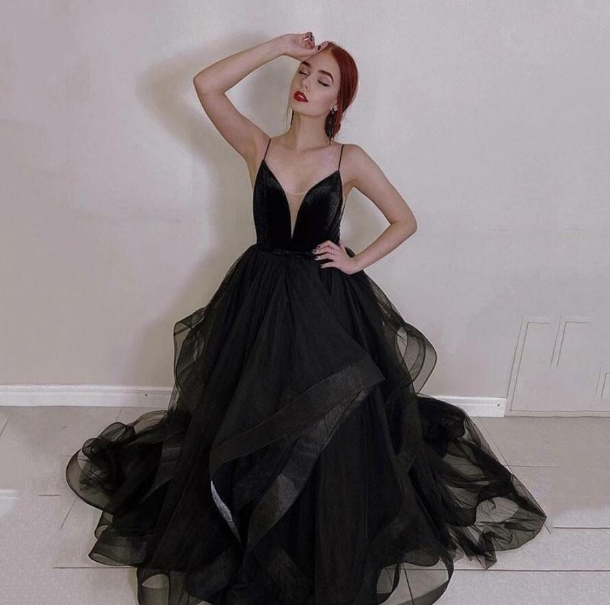 Sexy Spaghetti Straps Black Wedding Dresses Tulle Bridal Gowns Plus Size Backless Marriage Gothic Dress