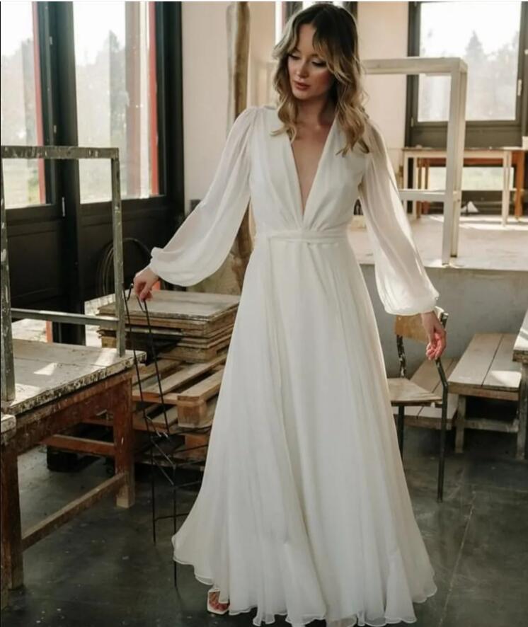 Elegant Wedding Dress V-Neck Long Sleeve Floor Length Bohemian Robe De mariee Charming For Women Brides Gown Bridal Gowns