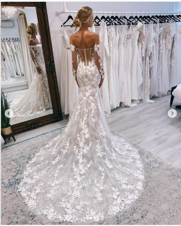 Sexy Floral Lace Wedding Dress, Mermaid Wedding Dress Bridal Dress