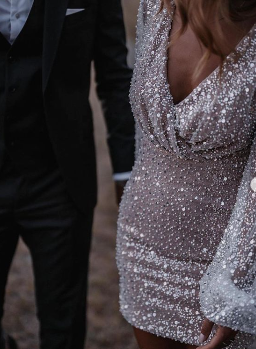 Sexy Wedding Dress, V-neck Wedding Dress, Bling Sparkle Mini Short Wedding Gown Bridal Dress