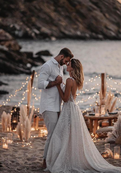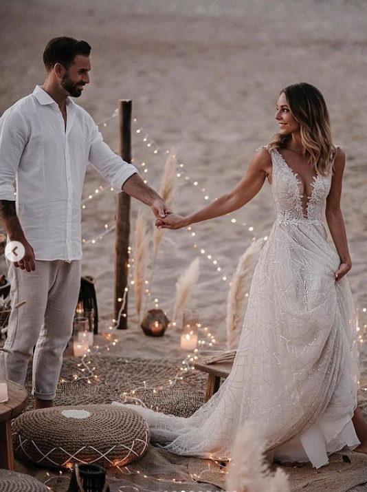 Boho Beach Wedding Dress, V-neck Wedding Dress, Tulle Backless Wedding Gown Bridal Dress