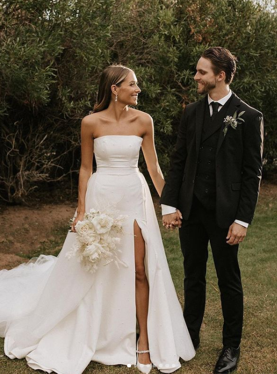 Simple Wedding Dress, A-line Wedding Dress, Strapless Satin Wedding Gown Bridal Dress