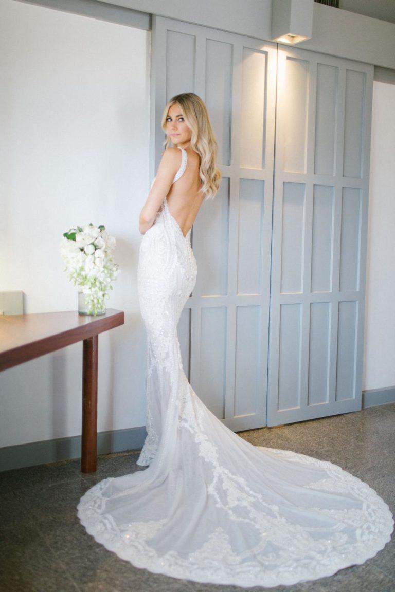Rustic Lace Wedding Dress, Backless Wedding Gown, Deep V-neck Long Bridal Dress