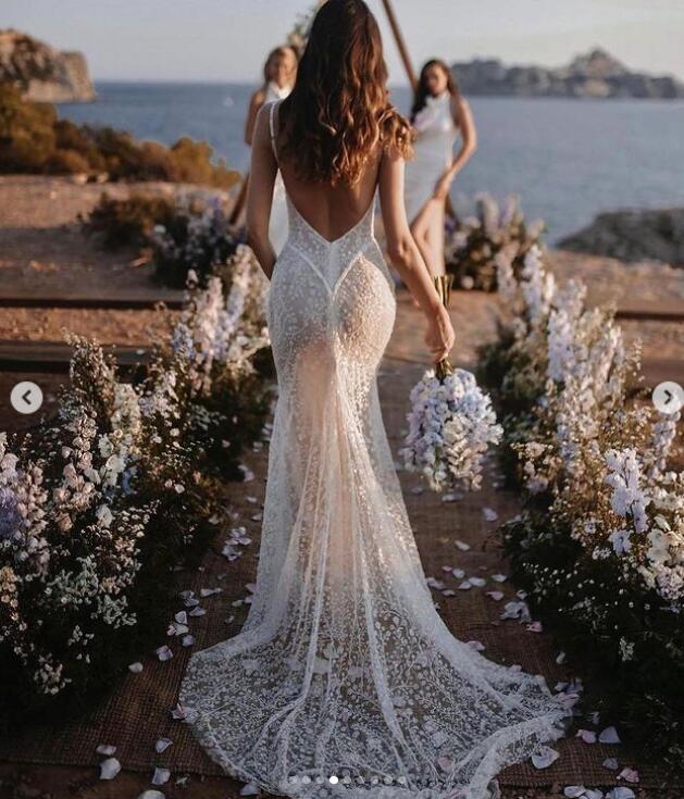 Dreamy Sheath Lace Wedding Dress, Backless Wedding Gown, Long Bridal Dress