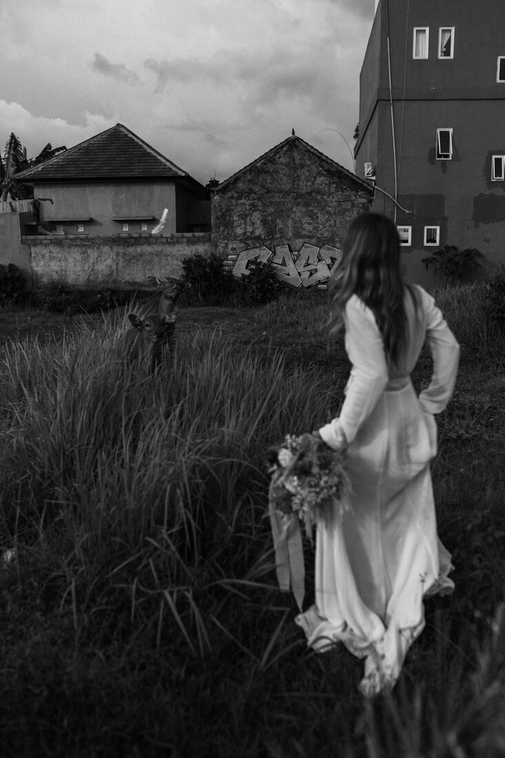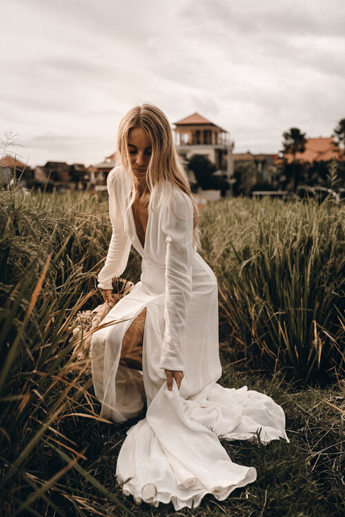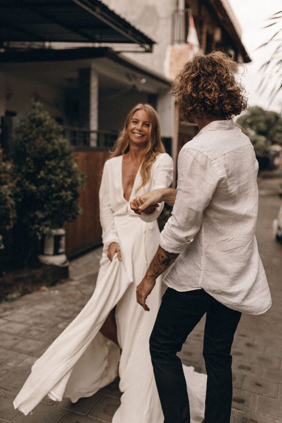 Simple Sexy Wedding Dress, Deep V-neck Long Sleeves Wedding Gown, Long Chiffon Bridal Dress