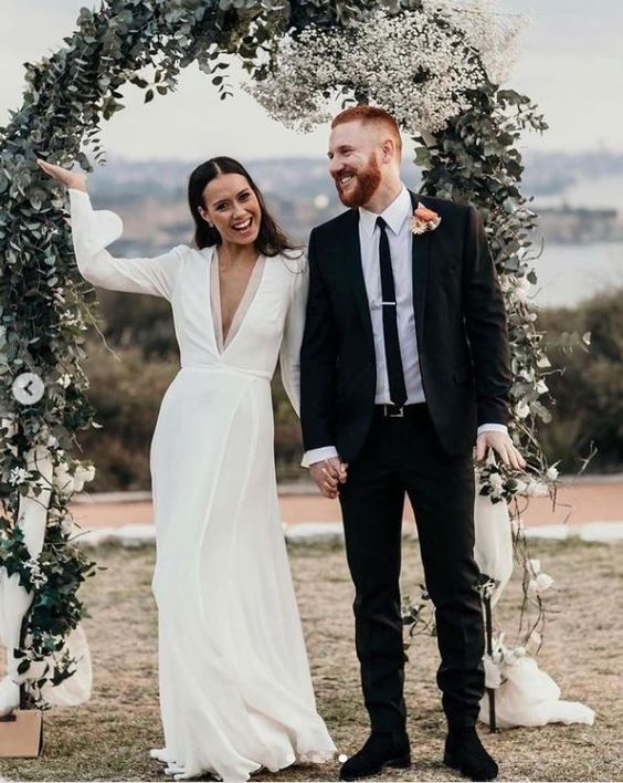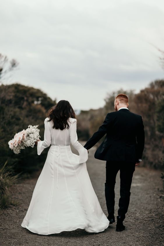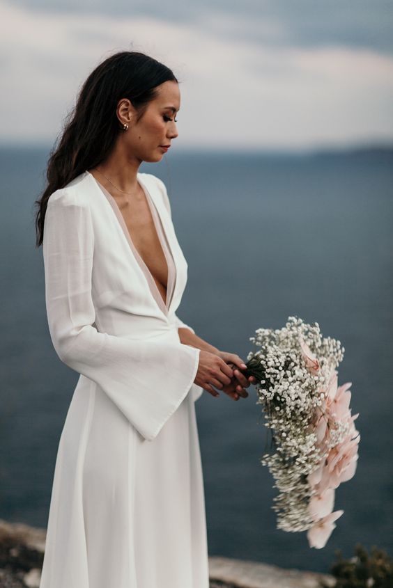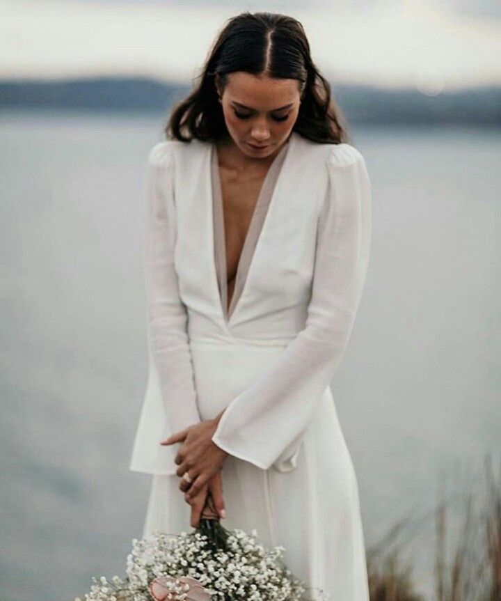 Sexy Wedding Dress, Deep V-neck Wedding Gown, Long Sleeves Bridal Dress
