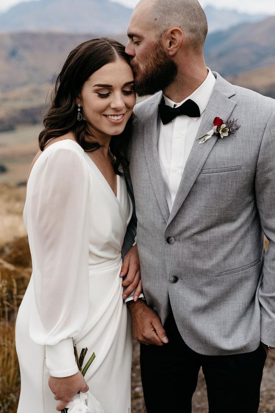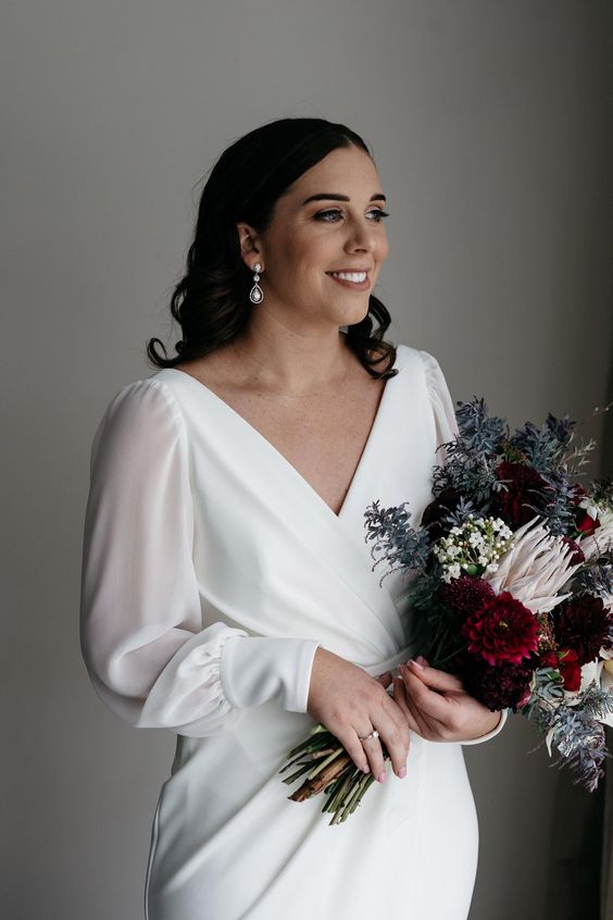 Plus Size Wedding Dress, Deep V-neck Wedding Gown, Backless Chiffon Bridal Dress