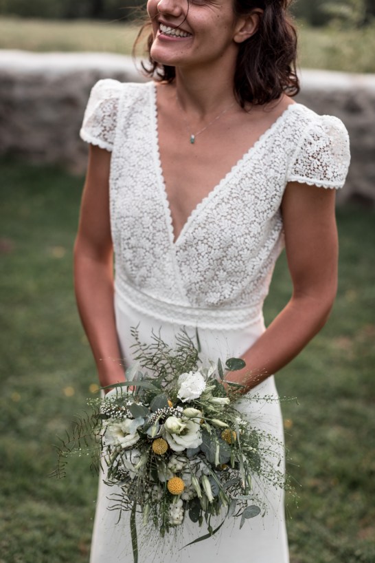 Sheath Wedding Dress, Cap Sleeves Wedding Gown, Lace Top Satin Bridal Dress