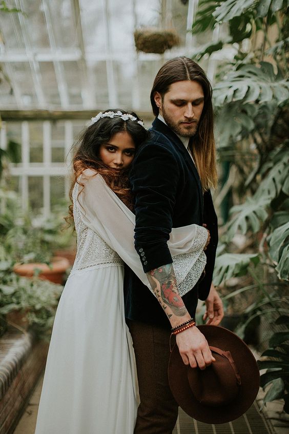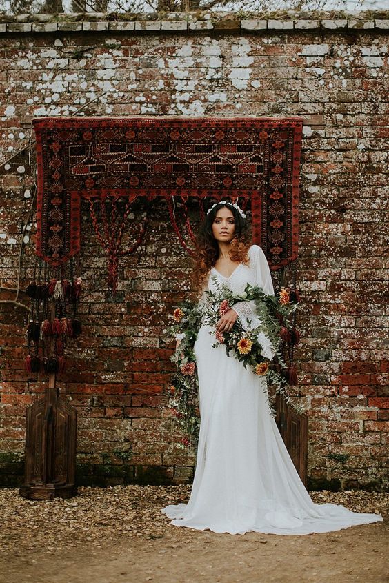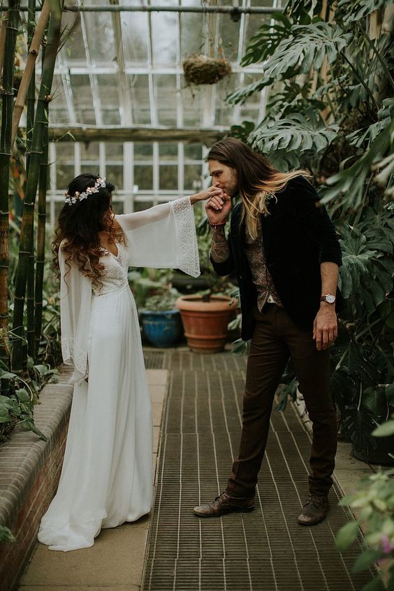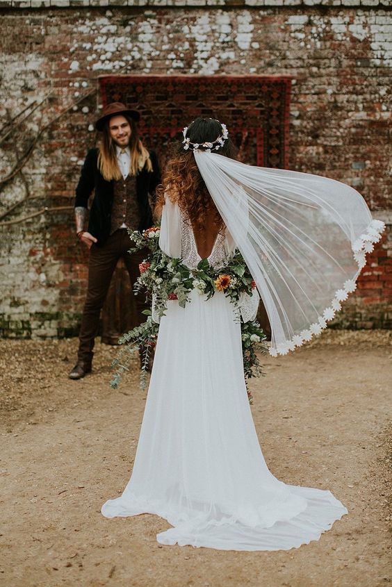 Dreamy Bohemian Wedding Dress, Lace Wedding Gown, Long Sleeves Lace Bridal Dress
