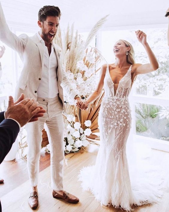 Sexy Fabulous Wedding Dress, Mermaid Floral Lace Wedding Gown, Backless Tulle Bridal Dress