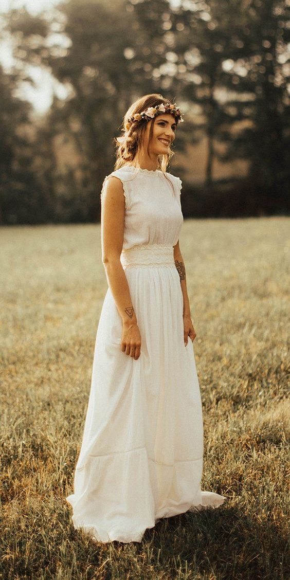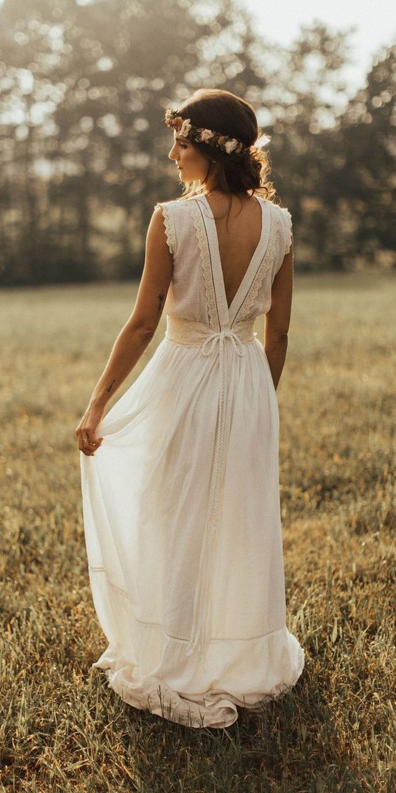 Modest Wedding Dress, A-line Wedding Gown, Open Back Chiffon Bridal Dress