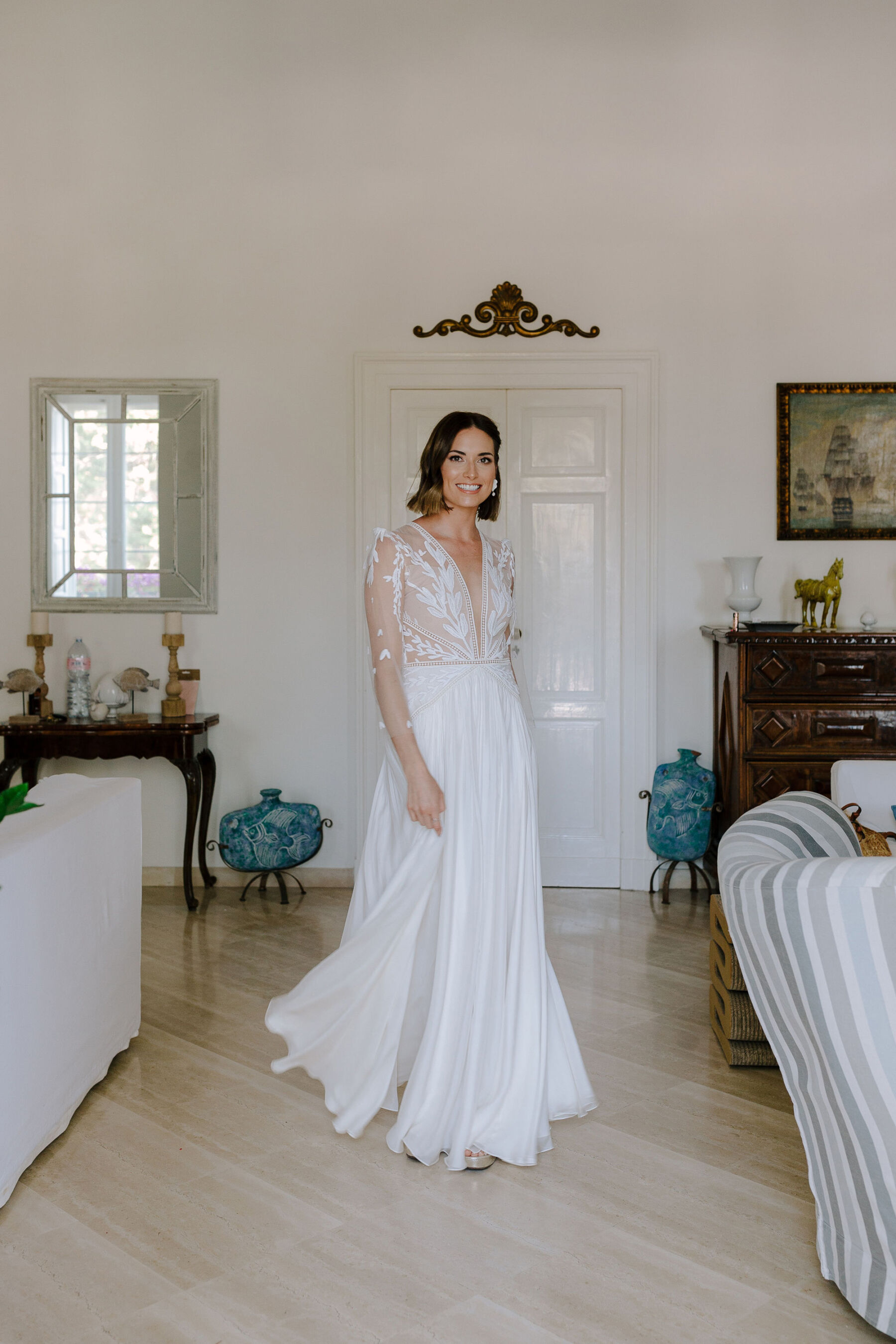 Classic Wedding Dress, V Neck Wedding Gown, Lace Bridal Dress