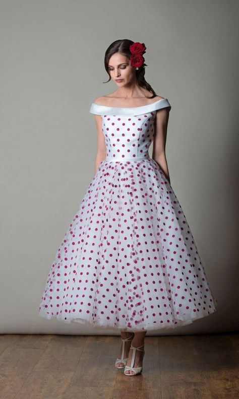 Classic Wedding Dress, 1950S Vintage Wedding Gown, Red Polka Dots Bridal Dress