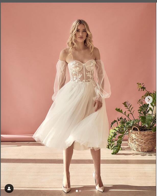 Classic Wedding Dress, Ball Gown Lace Wedding Gown, Mini Short Bridal Dress