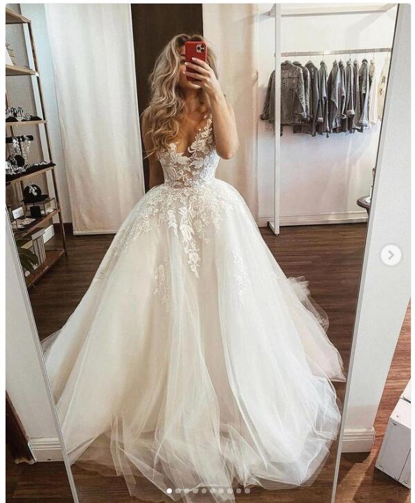 Ball Gown Wedding Dress, Lace Wedding Gown, Puffy Bridal Dress