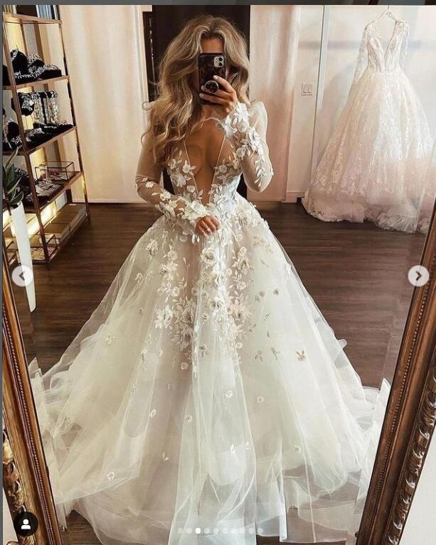 Ball Gown Wedding Dress, Lace Wedding Gown, Puffy Bridal Dress