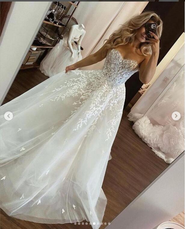 Ball Gown Wedding Dress, Lace Appliques Wedding Gown, Puffy Bridal Dress