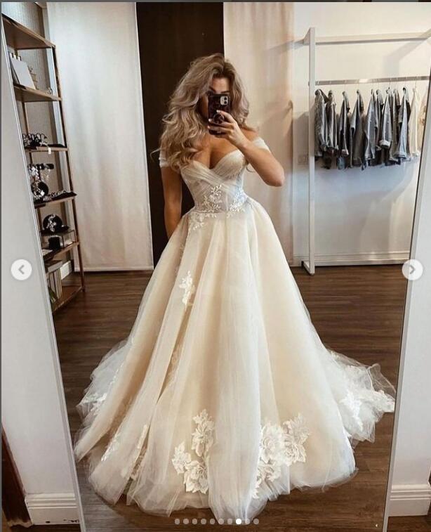 Ball Gown Wedding Dress, Lace Appliques Wedding Gown, Puffy Bridal Dress