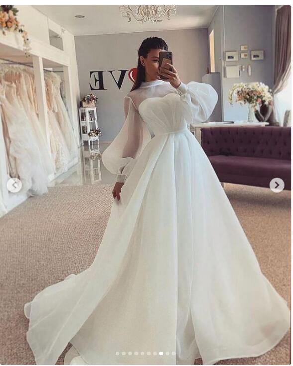 Simple Wedding Dress, Beach Wedding Gown, Long Sleeve Bridal Dress