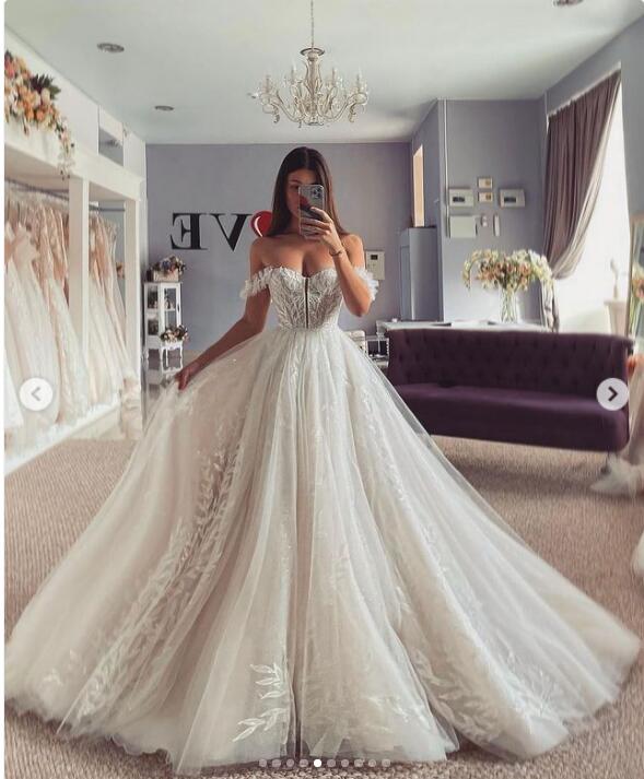 Off the Shoulder Wedding Dress, Lace Appliques Wedding Gown, Puffy Bridal Dress
