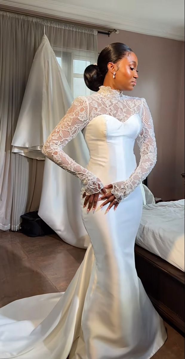 Elegant Mermaid Wedding Dress, Lace African Girls Wedding Dress Bridal Gown