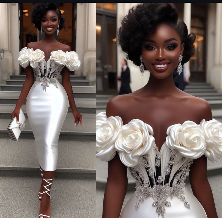 Simple Wedding Dress, African Girl 3D Handmade Flowers Tea-length Wedding Dress Bridal Gown