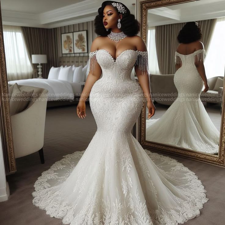 Plus Size African Luxury Wedding Dress, Mermaid Tulle Wedding Dress Bridal Gown