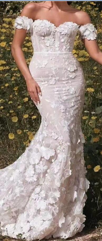 Sexy Mermaid Wedding Dress, Appliques Floral Wedding Dress Bridal Gown