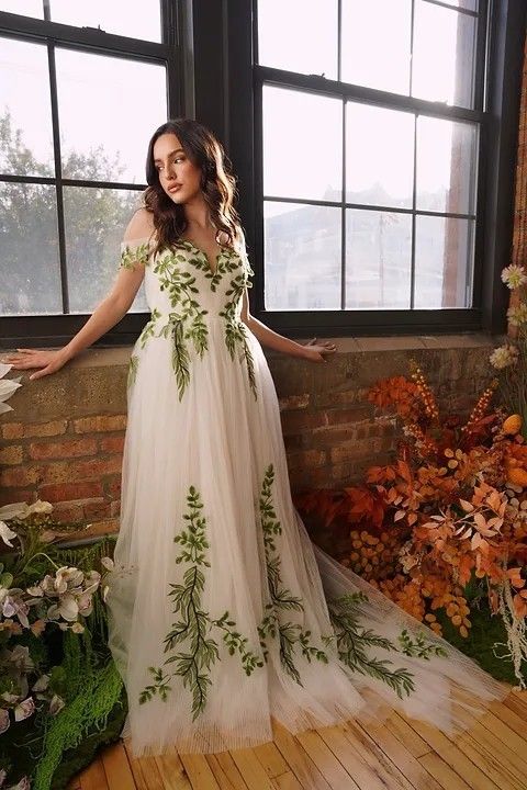 Sexy Wedding Dress, Green Leaf Wedding Dress Bridal Gown