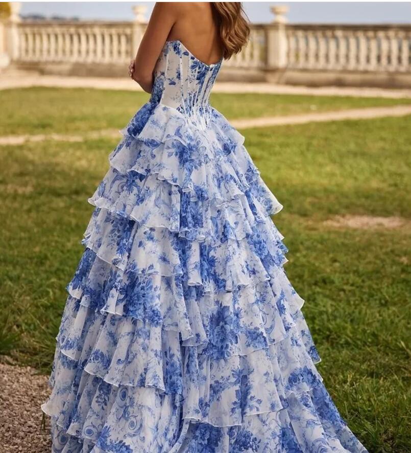 Blue Wedding Dress, Chiffon Wedding Dress Bridal Gown
