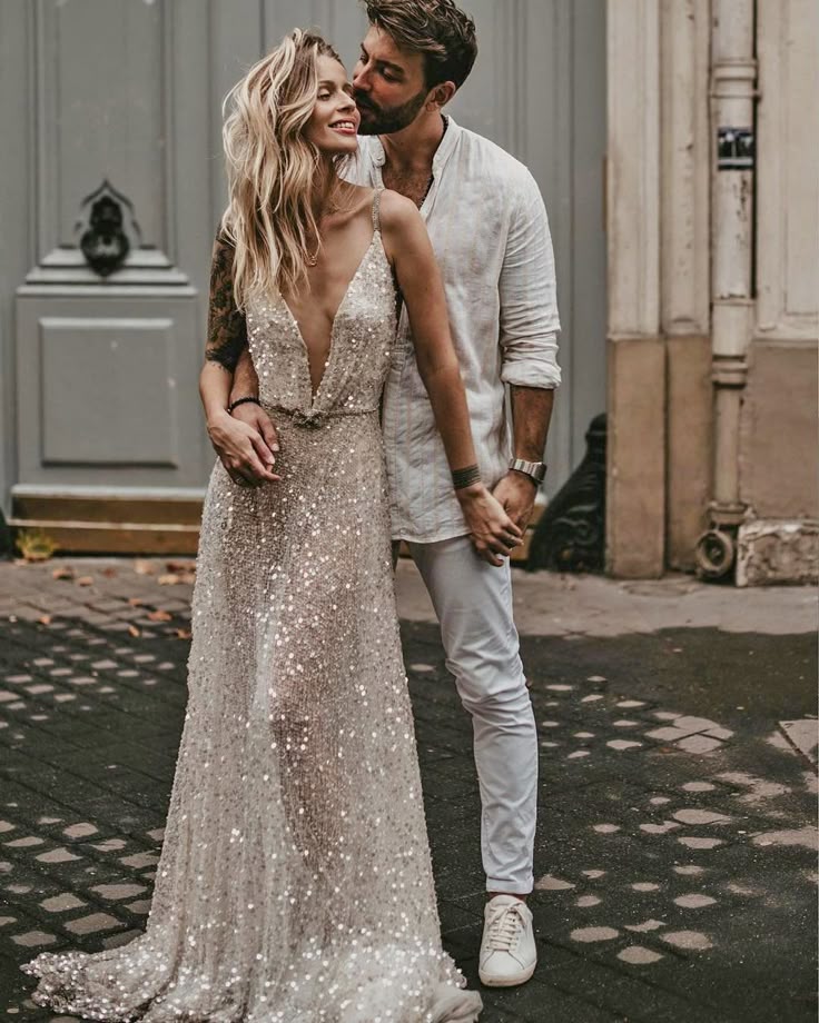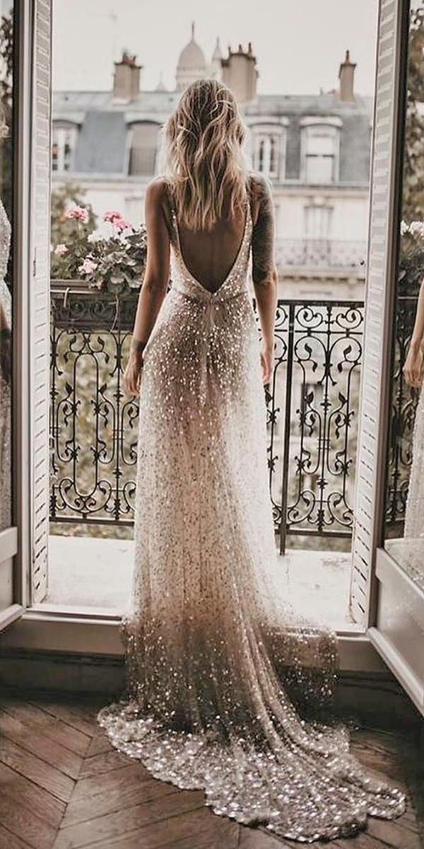 Sexy Deep V-neck Wedding Dress, Sequins Lace Wedding Dress Bridal Gown