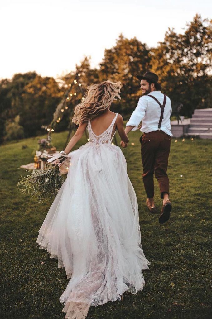 Sexy Floral Wedding Dress, Deep V-neck Tulle Wedding Dress Bridal Gown