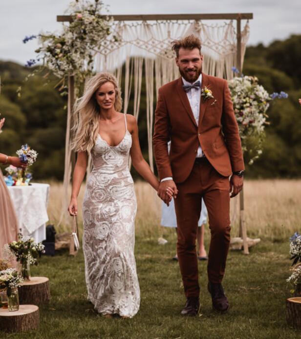 Beautiful Boho Lace Wedding Dress, Sexy Flowers Bridal Dress Bridal Gown