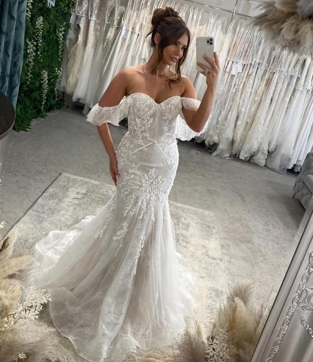 Sexy Mermaid Wedding Dress, Appliques Tulle Bridal Dress Bridal Gown