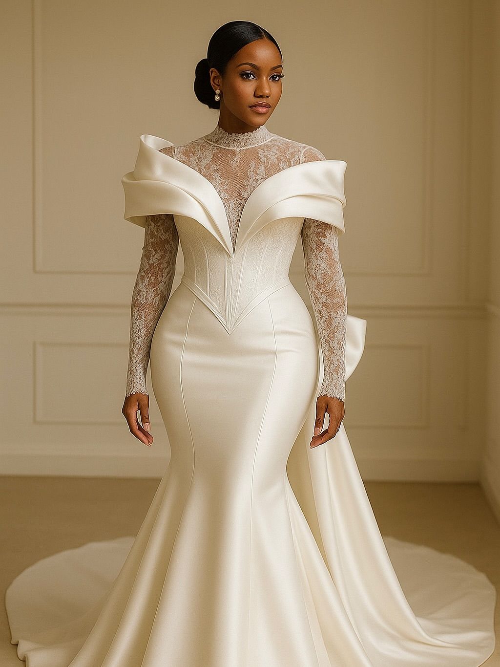 Luxury Wedding Dress, Mermaid Lace African Girls Bridal Dress Bridal Gown