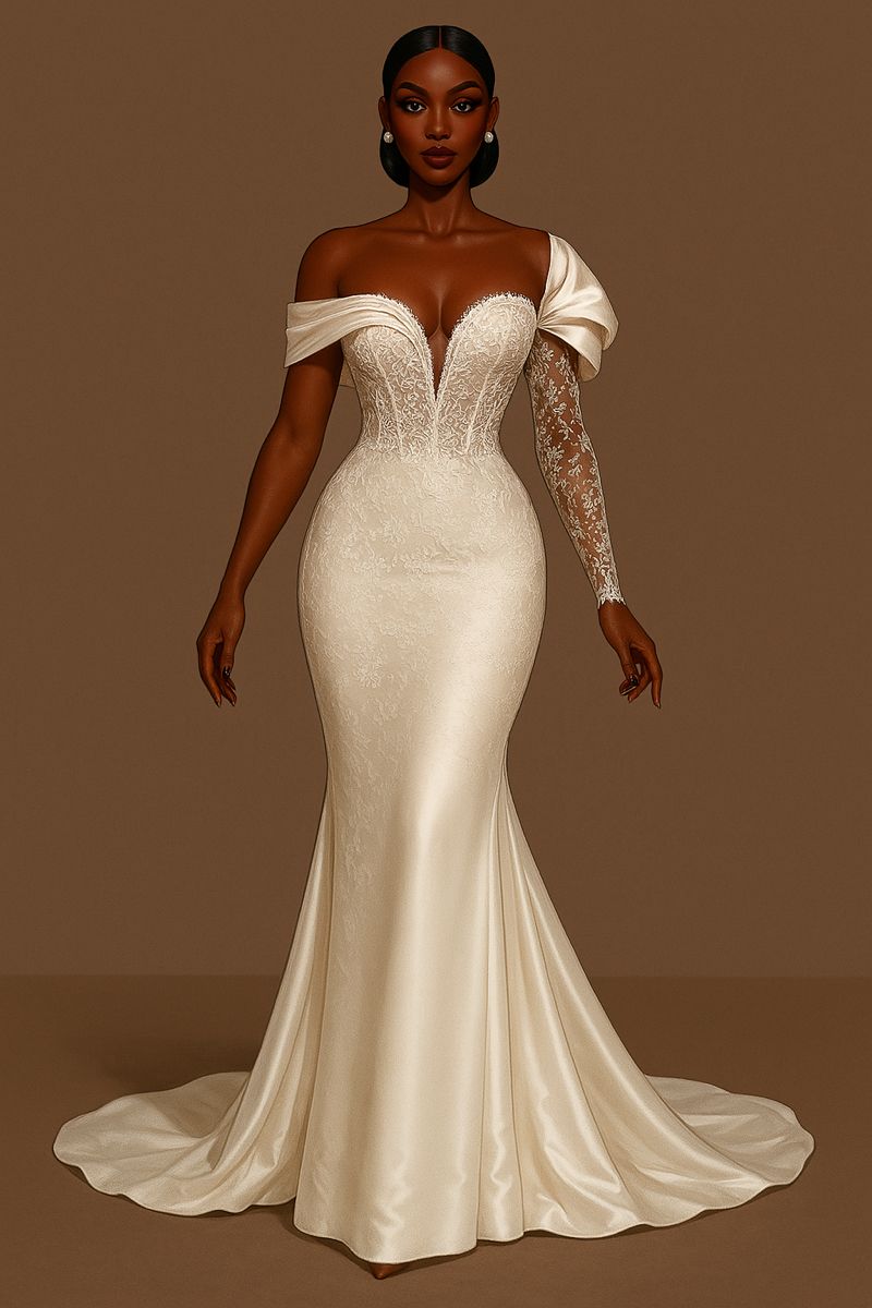 Simple Wedding Dress, Mermaid Lace Off the Shoulder African Girls Bridal Dress Bridal Gown