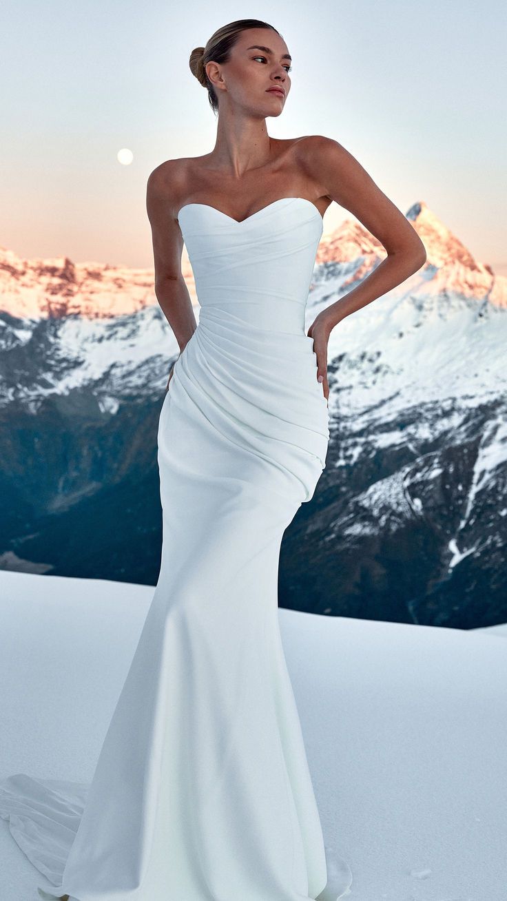 Elegant Mermaid Wedding Dress, Satin Beach Boho Bridal Dress Bridal Gown