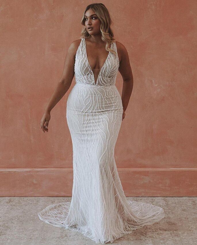 Elegant Wedding Dress, Mermaid Sequins Lace Plus Size Bridal Dress Bridal Gown