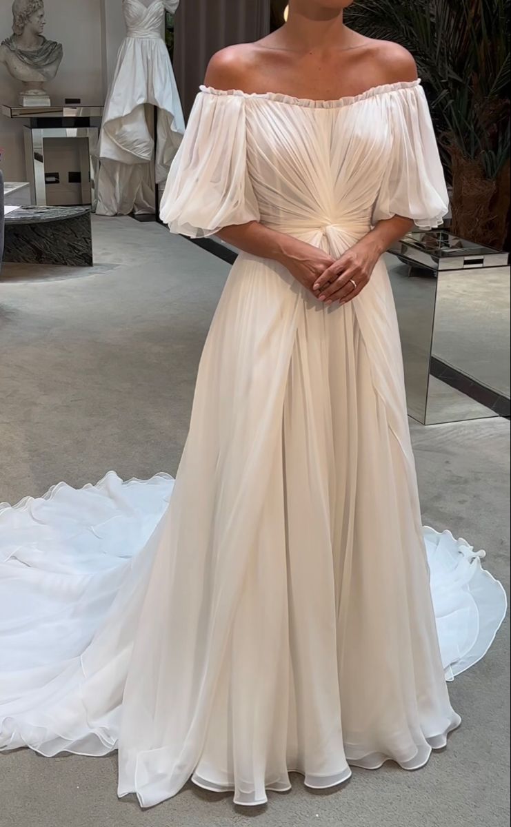 A Line Off the Shoulder Wedding Dress, Beach Boho Bridal Dress Bridal Gown