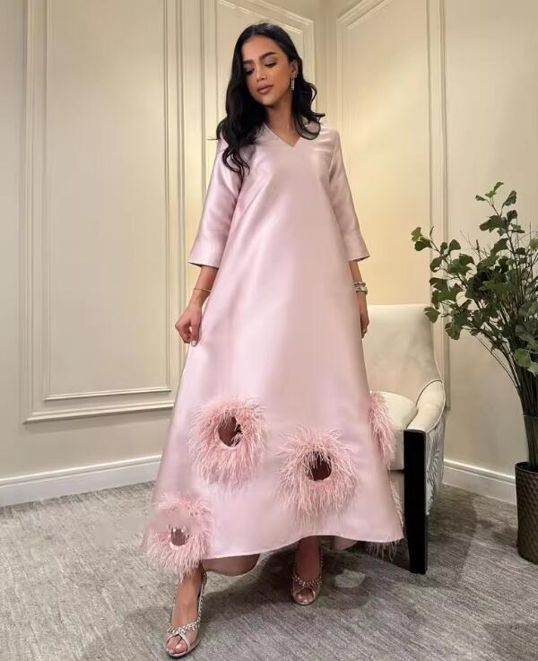 Customized Classic Modern Style Formal Evening V-Neck A-line Feathers s Bespoke Occasion Dresses