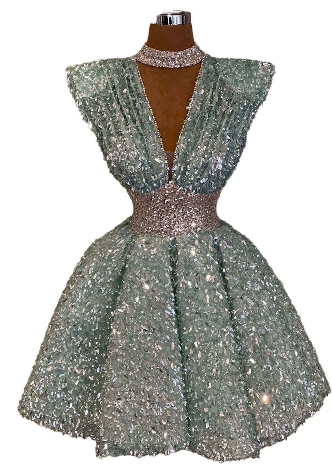 sage aline graduation dress sequined lace beaded short mini homecoming party formal cocktail prom bridesmaid gowns dresses