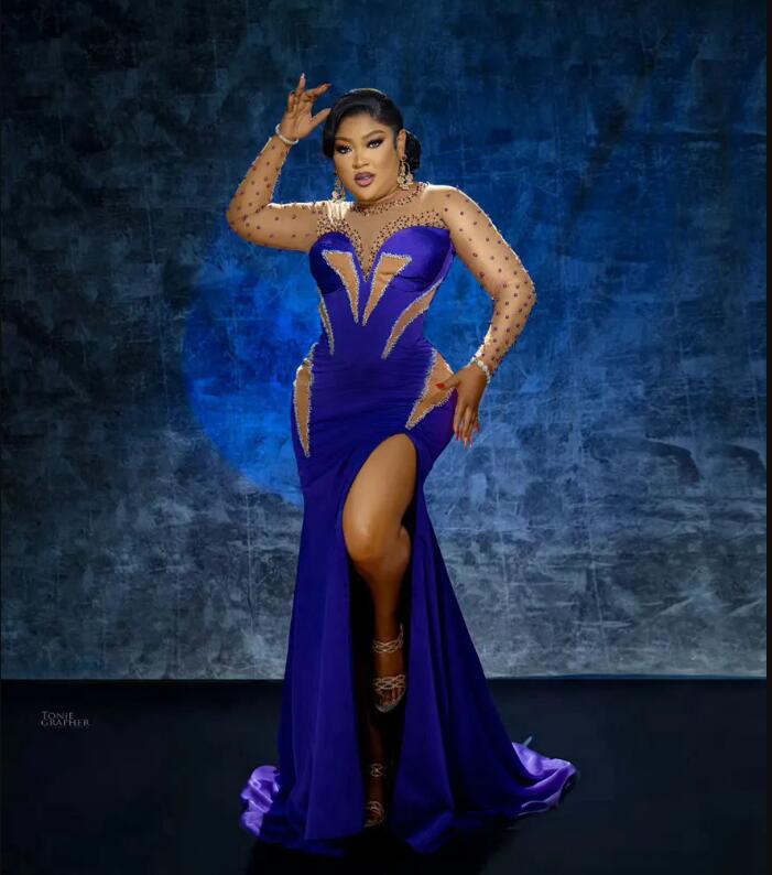 Plus Size Aso Ebi Prom Dress for Special Occasions Illusion Mermaid Side Split Beaded Evening Dresses Elegant Birthday Dress Second Reception Dress