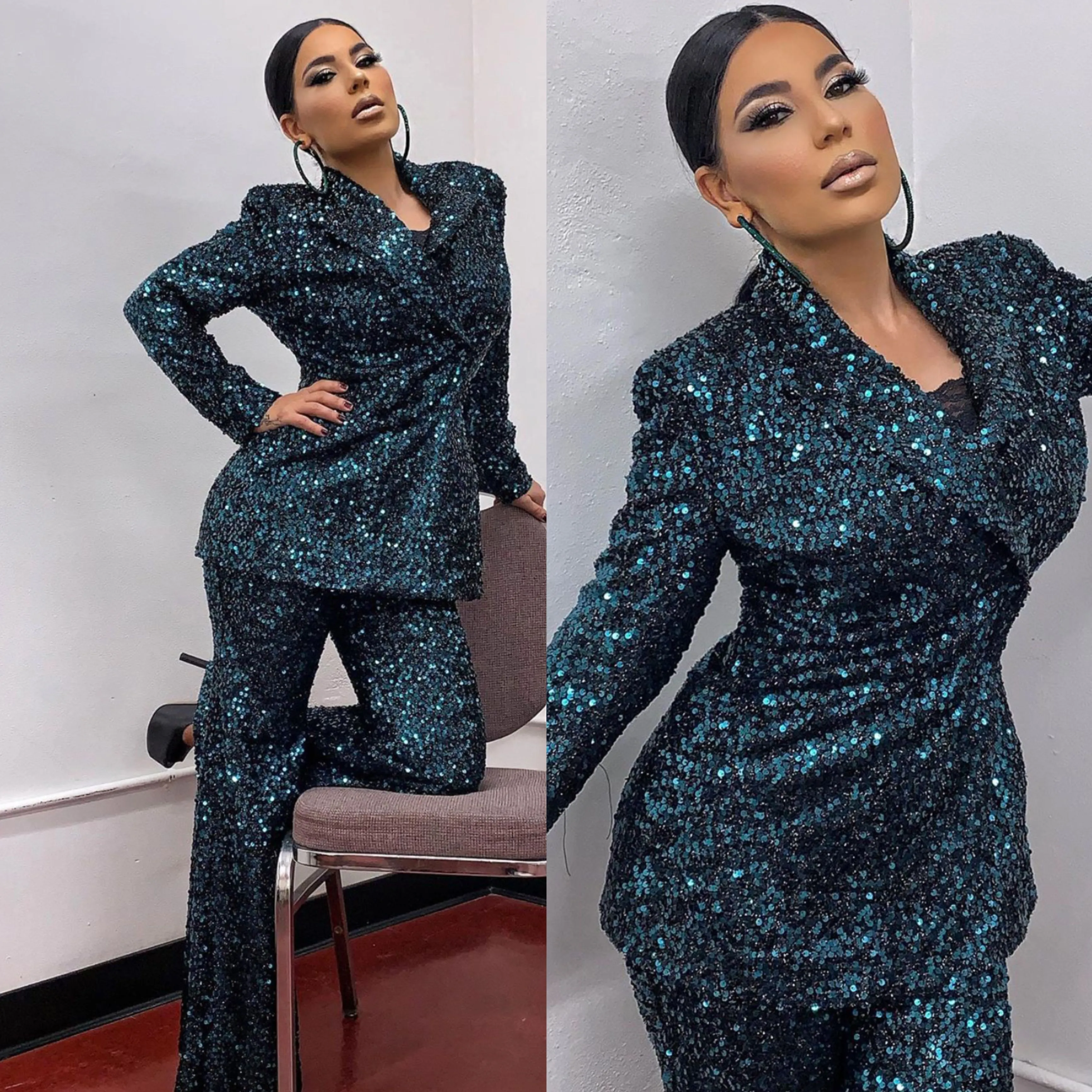 2 Pcs Sequins Prom Dresses for Women Slim Fit Pant Suit Elegant Evening Formal Party Second Reception Gowns vestido de novia
