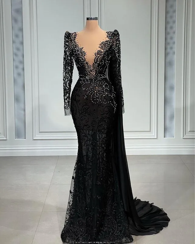 Plus Size Arabic Aso Ebi Black Mermaid Luxurious Prom Dresses Beaded Crystals Evening Formal Party Second Reception Birthday Dress