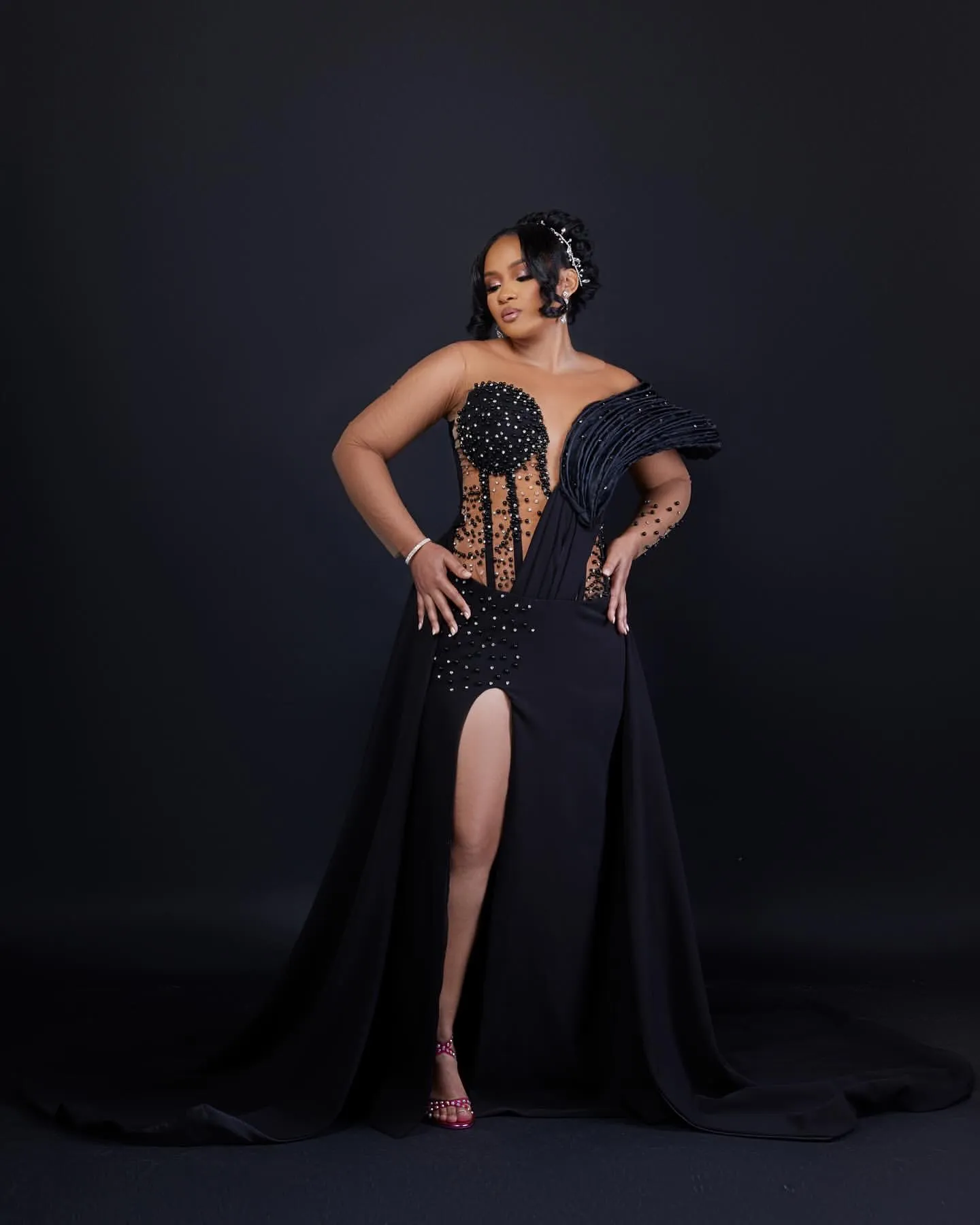 Black Mermaid Prom Dress Beaded Rhinestones Full Sleeves Evening Formal Party Second Reception Birthay Engagement Gowns
